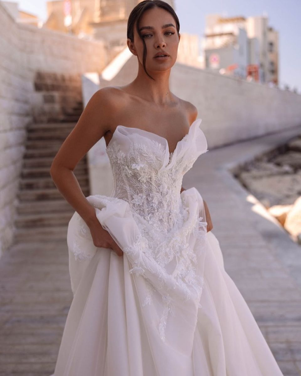 Bestellbar in allen Größen mit einem Chiffon- oder Tüllrock (auch mit einer guten Passgenauigkeit) in Farben ivory oder wie auf dem Bild.