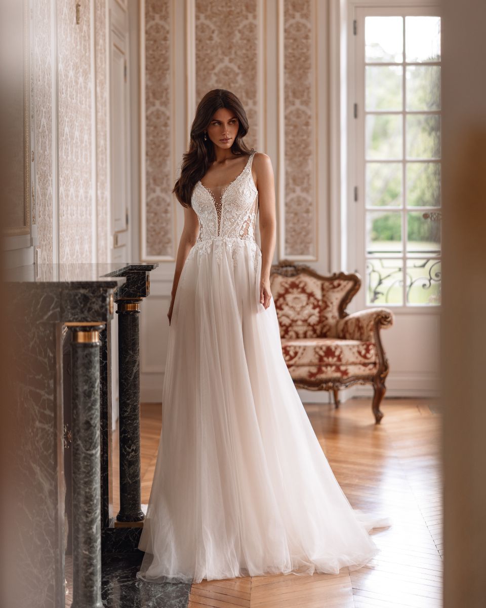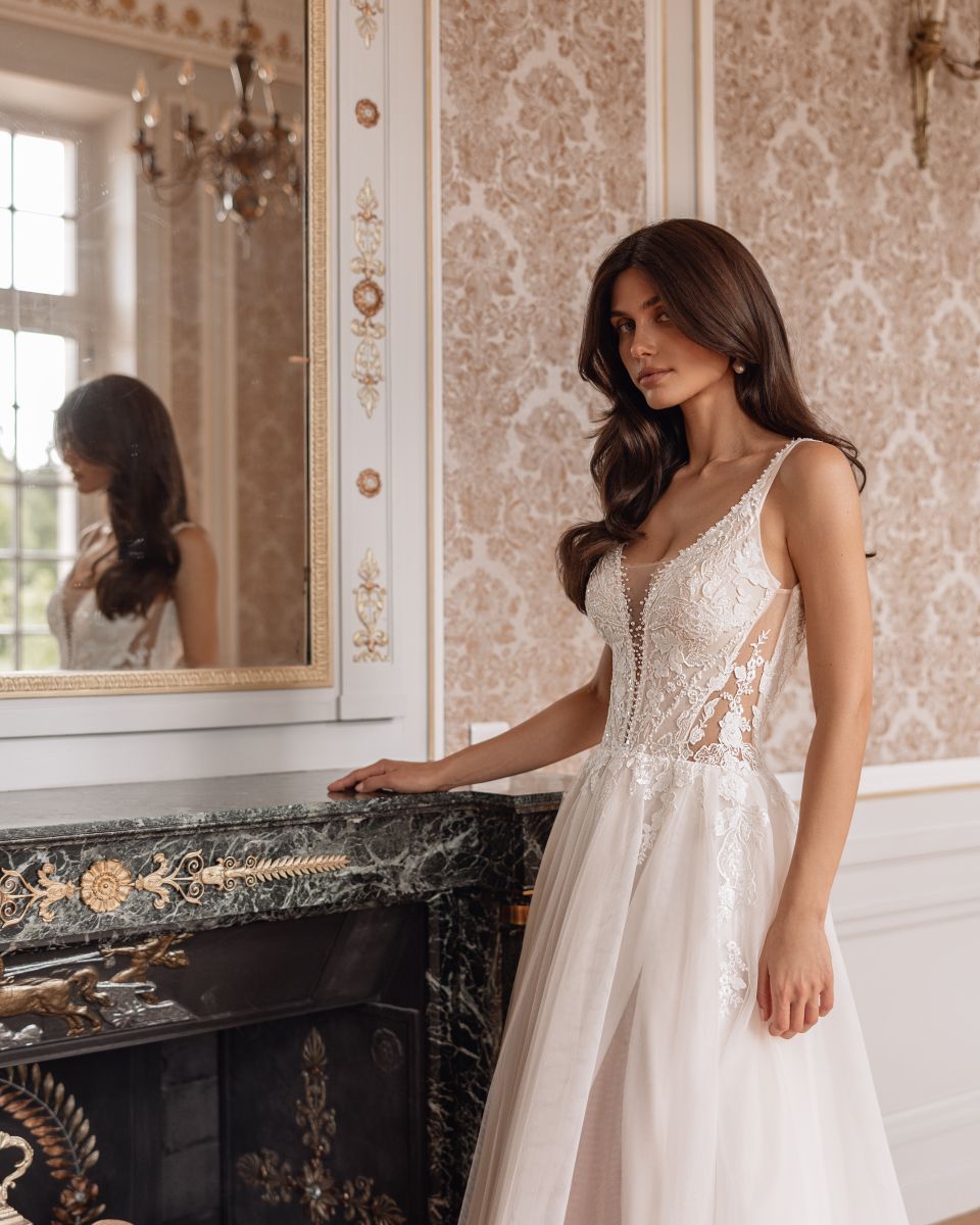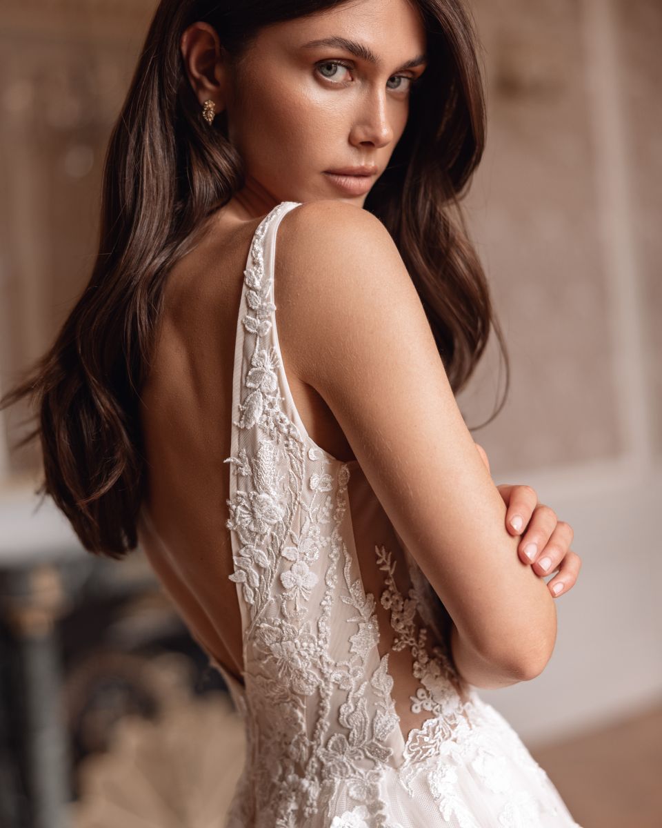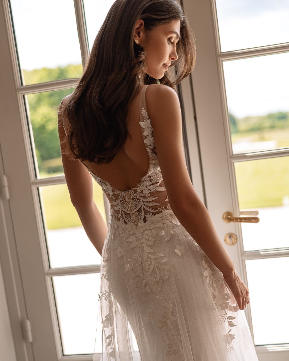 Vorhanden 1x in Gr. 34, wie original auf dem Bild und 1x in Gr. 36 mit dem Rock in blush und Rücken mit V Ausschnitt.