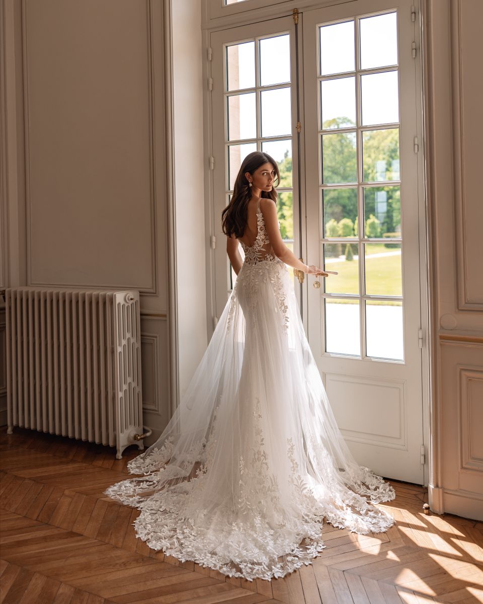 Vorhanden in Gr. 40 ohne Schleppe. Farblich wie abgebildet.